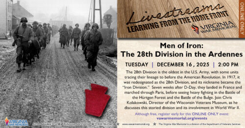 Virginia War Memorial Livestream – Men of Iron: The 28th Division in the Ardennes
